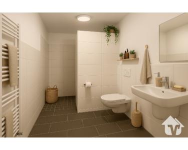Die in den Innenvisualisierungen dargestellten Ausstattungen (Bodenbeläge, Fliesen, Lampen, Möbel, Tapeten etc.) bilden nicht die Realität ab. Sie dienen lediglich dazu, sich ein Bild von den Räumlichkeiten zu machen. Die im Exposé beigefügte Baubeschreibung enthält die eigentlichen und verbindlichen Ausstattungsmerkmale.