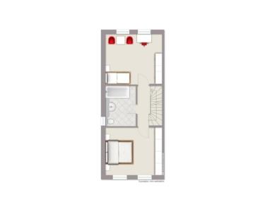 Im Obergeschoss finden Sie zwei ruhige Schlafräume, die sich ideal als Kinder- oder Arbeitszimmer nutzen lassen. Das angrenzende Tageslichtbad mit Badewanne bietet einen angenehmen Rückzugsort für entspannte Momente.