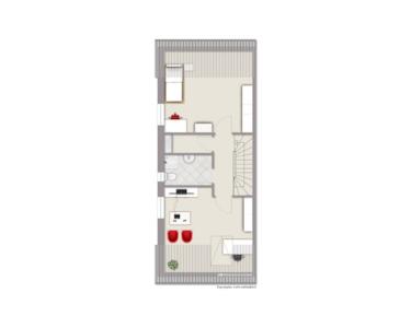 Das Dachgeschoss erweitert das Wohnangebot um zwei weitere, gut geschnittene Schlafzimmer, ein separates Hauswirtschaftsraum mit Waschmaschinenanschluss sowie ein modernes Duschbad – alles auf einer Ebene, sodass die Familie hier Privatsphäre und Komfort genießt.