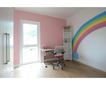Im Erdgeschoss finden Sie das Schlafzimmer, welches durch ein Ankleidezimmer ergänzt wird. Zwei zusätzliche Zimmer auf dieser Ebene können flexibel als Büro, Kinderzimmer oder Gästezimmer genutzt werden. Ein modernes Badezimmer mit Dusche und Badewanne ergänzt das Raumangebot auf dieser Ebene.