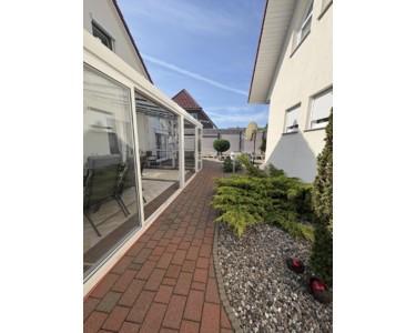 Das 2005 erbaute Haus verfügt über eine Wintergarten und eine überdachte Terrasse, im Wohnzimmer befindet sich ein Kachelkamin, es gibt eine Fußbodenheizung, ein Gäste-WC und ein Bad mit Dusche und Badewanne.Es gibt einen Treppenlift.