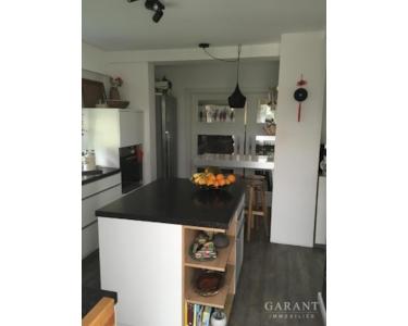 Der offene Wohn- und Küchenbereich mit seiner hochwertigen Einbauküche ist das Herzstück des Hauses. Hier duftet es nach frisch zubereitetem Kaffee, hier wird gelacht, gespielt, gefeiert und gelebt. Die vielen Fenster schenken viel Licht und lassen den Blick in den Garten wandern, mit einem Gefühl von Freiheit und Gelassenheit.