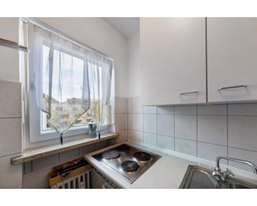 Der gut geschnittene Wohnbereich ist dank großer Fensterflächen angenehm hell und bietet Zugang zu einem großzügigen, durchgängigen Balkon – ideal, um den Feierabend im Freien zu genießen. Ein neuer Bodenbelag verleiht dem Raum eine moderne und gepflegte Atmosphäre. Die separate Küche ist mit einem Fenster ausgestattet, was für natürliches Licht und gute Belüftung sorgt – ein echter Vorteil bei einer 1-Zimmer-Wohnung.