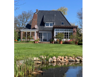 Eingebettet in einen wunderschön angelegten Garten liegt das von Licht und Weite geprägte Landhaus blickgeschützt in einer bevorzugten Lage von Nordstrand.