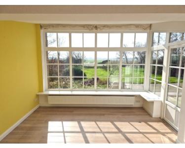 Durch die verglaste Dielentür tritt man in den geschmackvoll gefliesten Essbereich, mit harmonisch eingefügter Küche, von dem aus man durch eine große Flügeltür in den offen gestalteten Wohnbereich mit direktem Terrassenzugang gelangt. Ob gemütlich am Kamin, für den Rückzug mit Sicht ins Grüne oder mit atemberaubenden Ausblick auf das Grundstück und endlose Felder im Wintergarten, hier findet jeder seinen Lieblingsplatz.