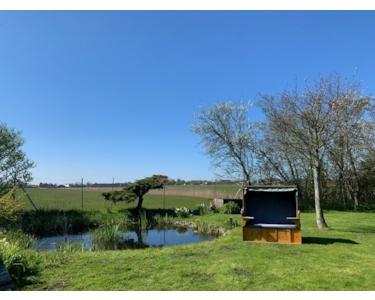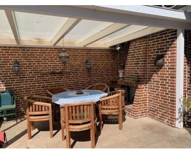 Von der großzügigen Terrasse mit überdachtem Sitzplatz und Außenkamin gelangt man in den liebevoll gestalteten grünen Garten. Mit seinen bunten Blumenbeeten, Obstbäumen und dem hübschen Teich lädt er zum Erholen und Verweilen ein.