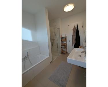 - Tageslichtbad mit großer ebenerdiger Dusche, Badewanne & Doppelwaschbecken