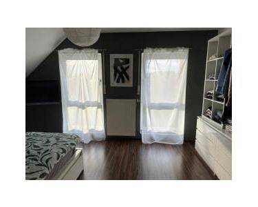 Überall sind doppelt verglaste Kunststoff-Fenster mit Rollläden installiert, die nicht nur für eine angenehme Atmosphäre, sondern auch für einen effizienten Wärmeschutz sorgen. Lediglich das Schrägfenster im zweiten Kinderzimmer (aktuell Home-Office) besitzt keine Rollläden, kann aber z. B. mit Stoffvorhängen, Lamellen oder Plissees nach Maß abgedunkelt werden.