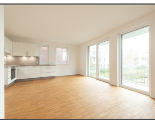 Im offenen Wohnbereich befindet sich auch eine moderne Einbauküche. Alle wichtigen Elektrogeräte, bis auf einen Kühlschrank, sind bereits vorhanden. Der angrenzende Balkon lädt zu entspannten Stunden in der Sonne oder zur Erholung nach einem stressigen Tag ein.