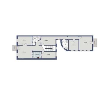 Das Büro/ die Praxis hat 6 Zimmer, Küche, WC, Bad und Flur sowie einen Abstellraum im Keller.
