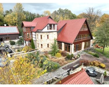 In absoluter Alleinlage auf einem rund 9 ha großen historischen Mühlenareal zeigt sich dieses villenähnliche Domizil mit ca. 1000 m² Wohn- und Nutzfläche. Modernster Komfort trifft auf einmalige Mühlendetails: Ein durch das Haupthaus fließender Mühlengraben und das erneuerte Mühlenrad setzen eindrucksvolle Akzente. Das Anwesen umfasst das große Haupthaus, ein denkmalgeschütztes Gästehaus mit integrierter Garage, ein Heizhaus, ein Grillareal und einen eigenen Saunabereich mit Tauchbecken. Der offene Wohn-Essbereich, mehrere luxuriöse Bäder und edle Materialien schaffen sowohl repräsentative als auch private Rückzugsräume – ein Refugium, das Natur, Geschichte und gehobenes Wohnen auf besondere Weise verbindet.
