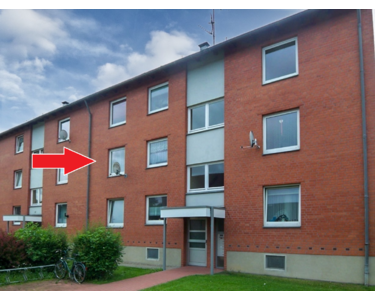 3 Zimmer, Wohnfläche ca. 69 m², Baujahr ca. 1979, Grundstück ca. 3.782 m², davon 387/10.000stel Miteigentumsanteil, Gas-Zentralheizung, Bedarfsausweis mit Endenergie: 192,6 kWh/(m²a), Klasse F;