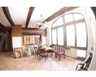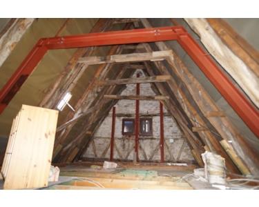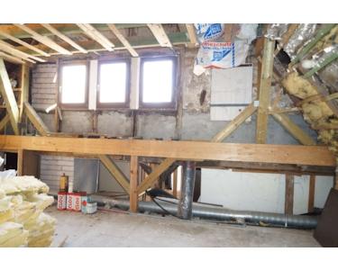 Das Gebäude wurde in Fachwerkbauweise errichtet und verfügt über imposante Balken und Stützen im Innenbereich. Es gibt wenige Wände, die z.T. verändert oder entfernt werden können.
