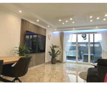 Das gemütliche Wohnzimmer mit Teilbodenheizung und eleganten Fliesen lädt zu entspannten Abenden ein. Im Hauptschlafzimmer sorgt ein maßgefertigter Einbauschrank für Ordnung und Stil. Zwei modern ausgestattete Bäder mit Duschen sowie ein zusätzliches Gäste-WC bieten höchsten Komfort.