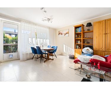 • Wohn-/Esszimmer, Vinylfußboden in Fliesenoptik, Zugang zur Terrasse