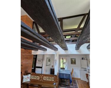 Das Einfamilienhaus ist in massivem Fachwerk gebaut und wurde komplett saniert. Es bietet über mehrere Stockwerke Platz für eine Familie. Im Erdgeschoss befinden sich die Küche mit angrenzendem Esszimmer, das Wohnzimmer sowie zwei weitere Zimmer & ein Gäste-WC. Der offene Kamin im Erdgeschoss verleiht den Wohnräumen Gemütlichkeit.
