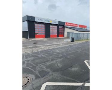 Im gleichen Gebäudekomplex befinden sich u. a. die DEKRA, was zusätzlichen Kundenverkehr und einen klaren Standortvorteil für nutzungsaffine Betriebe schafft.