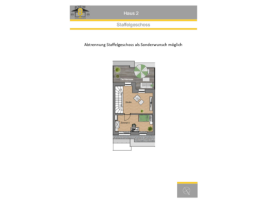 Das Dachgeschoß bietet weitere Planungsvarianten (wie z.B. 2 Schlafräume oder Studio mit zusätzlichem Bad) möglich.