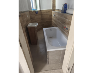und ein Großes Wc mit Dusche und Wanne das haus ist nicht billig schnell zusammen geschustert unter allen Rigipsplatten sind Osb platten also unzerstörbar gut zum vermieten . Die Nagelneue Vissmann Therme ist in dieser Wohnung in einem kleinem Heizraum von dort aus beheizt sie das ganze Haus . Bis jetzt ist nur vorgemalert der Elektriker hat noch einen Tag Arbeit . der Gas Wasser Mensch noch ca 2 dann sind die 2 Wohnungen bezugsbereit