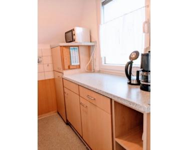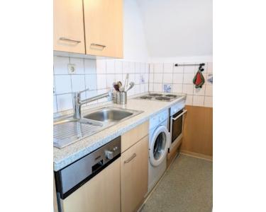Die Küche ist voll ausgestattet mit: Backofen, Herd, Geschirrspüler, Waschmaschine, Kühlschrank mit Gefrierfach sowie Mikrowelle, Wasserkocher und Kaffeemaschine, etc.