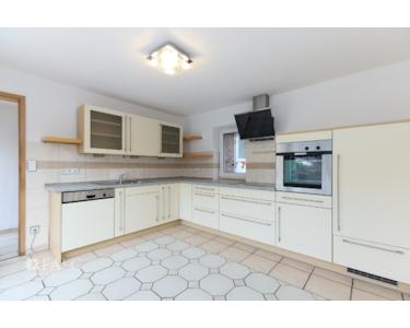 Die gartenseitige, voll ausgestattete Küche ist funktional gestaltet und bietet direkten Zugang zum eigenen Garten. Die Küche soll vom Mieter übernommen werden.