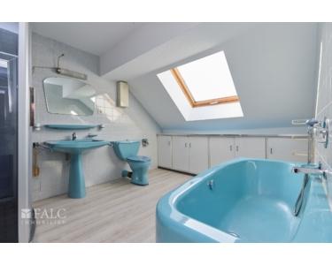 Im Dachgeschoss befindet sich ein weiteres, großes Schlafzimmer sowie ein Bad mit Badewanne und einer zusätzlichen Dusche.
