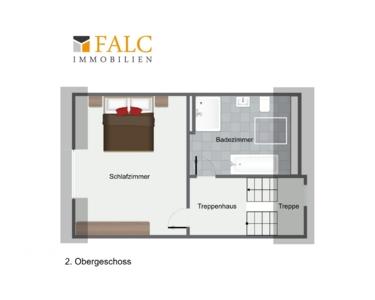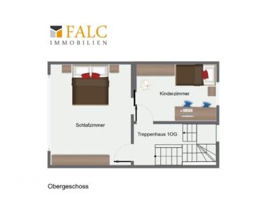 Über die Treppe erreichen Sie das Obergeschoss mit zwei gut geschnittenen Schlafzimmern. Ob als Elternschlafzimmer, Kinderzimmer oder Arbeitszimmer – hier stehen flexible Nutzungsmöglichkeiten zur Verfügung.