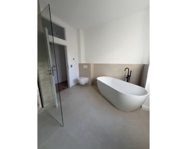 Die Erdgeschosswohnung besticht durch einen durchdachten und modernen Grundriss, der ein angenehmes, offenes Wohngefühl vermittelt. Das Highlight bildet das luxuriös ausgestattete Badezimmer mit großer Walk-in-Dusche und komfortabler Badewanne, das keine Wünsche offen lässt.