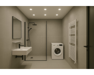 - Komplett modernisiertes Badezimmer mit begehbarer Dusche, Glasabtrennung, hochwertigen Armaturen und stilvollen Fliesen