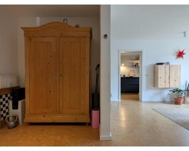 Der großzügige Wohnbereich wird durch einen lichtdurchlässigen Windfang stilvoll aufgewertet und schafft eine offene, freundliche Atmosphäre. Im Wohnzimmer, Flur und in der Küche sind im Jahr 2020 ein hochwertiger Korkboden verlegt worden, der für ein warmes Raumgefühl sorgt.