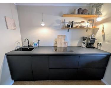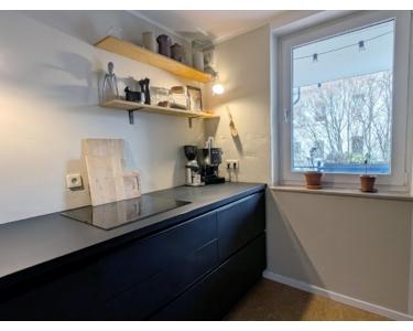 Die Wohnung verfügt über eine hochwertige Einbauküche mit Induktionsherd, Geschirrspüler und viel Stauraum (im Kaufpreis inbegriffen).