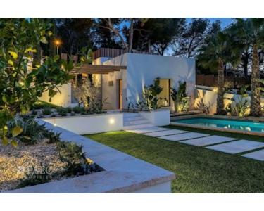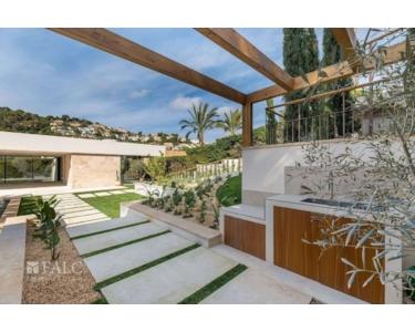 Diese fabelhafte, Neubau-Villa in Bendinat zeichnet sich durch hochwertige Materialien, mediterranes Design mit Gästewohnung, Sauna und Fitnessraum aus. Das Objekt ist auf zwei Etagen aufgeteilt und verfügt über 4 Schlafzimmer, 6 Badezimmer (jedes Schlafzimmer mit eigenem Bad, Gästebad) sowie eine Gästewohnung mit eigenem Bad. Erbaut auf einem Hanggrundstück von ca. 1.117 m2, ist die Immobilie so konzipiert, dass der Zugang von der Strasse aus erfolgt und sich der Wohnbereich auf der oberen Ebene befindet. Vom Eingang und dem Flur gelangt man in den Essbereich und die moderne Küche, die sich an ein gemütliches Wohnzimmer anschliesst. Von der Küche und dem Essbereich aus überblickt man den mediterranen Garten und den beeindruckenden 12m x 4m grossen Swimmingpool. Jenseits des Pools befindet sich die separate Gästeunterkunft und eine Aussenküche. Über die Treppe gelangt man ins Erdgeschoss, wo sich eine Bibliothek befindet, die zu den 4 Schlafzimmern mit eigenem Bad führt - die Master-Suite hat einen herrlichen Blick auf das Tal und einen privaten Garten, der von der Terrasse aus zugänglich ist. Darüber hinaus gibt es ein Heimkino und ein Gästebad. Im Untergeschoss befinden sich ein Fitnessraum und eine Sauna, ein zweites Badezimmer für den Fitnessraum, ein Maschinenraum und eine Garage mit Platz für 3 Fahrzeuge. Zudem gibt es einen Lastenaufzug, der das Untergeschoss mit dem Rest des Hauses verbindet. Extras: Fussbodenheizung, Klimaanlage, doppelt verglaste Fenster, Kamin, Garage und vieles mehr.