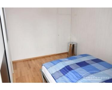 Schlafzimmer mit Bett 140x200 cm, Kleiderschrank.