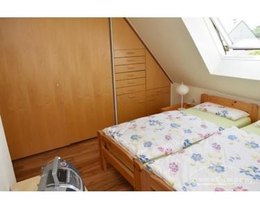 Schlafzimmer mit 2 Betten 100x200 cm (auch zusammenstellbar), großer Einbau-Kleiderschrank, Regal.