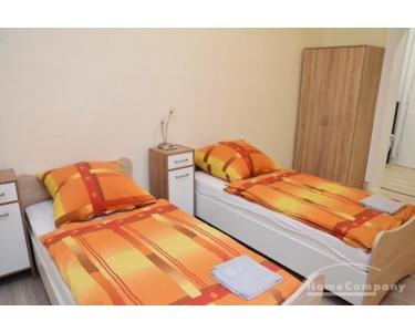 Schlafzimmer mit 2 Betten 90x200 cm (zusammenstellbar), Nachttischchen, Kleiderschrank.