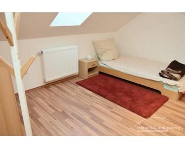 Schlafzimmer mit Bett 80x200 cm, Kleiderschrank.