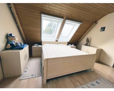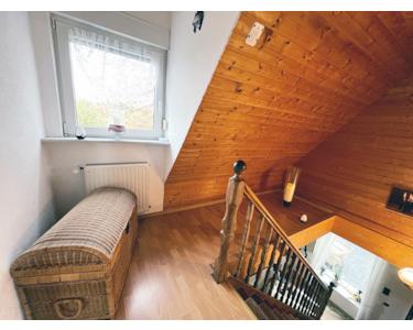 Dachgeschoss: Elternschlafzimmer, Kinderzimmer I, Kinderzimmer II (respektive Büro), Flur, Bad (mit Dusche) und Balkon