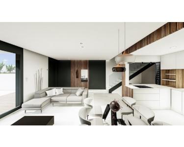 Diese attraktive Reihen-Villa bietet auf einem eigenen Grundstück höchsten Wohnkomfort und ein modernes mediterranes Lebensgefühl. Mit drei Schlafzimmern, drei Badezimmern, einem privaten Swimmingpool und einem eigenen Parkplatz ist sie ideal für Familien oder alle, die Ruhe und Privatsphäre schätzen. Die Villa besticht durch helle, großzügige Räume und eine durchdachte Architektur, die ein angenehmes Wohnambiente schafft.