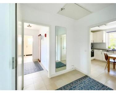 In dem großzügig angelegten Flur gibt es einen zusätzlichen Arbeitsbereich mit eingebauter Tischplatte, ideal für das Home Office.