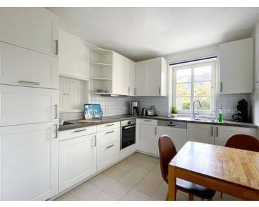 Die helle, moderne Einbauküche bietet viel Platz und ist komplett ausgestattet (hochwertige Elektrogeräte von Bosch: autarkes Kochfeld, Backofen und Geschirrspüler, Kühlschrank mit seperatem Tiefkühlfach, Mikrowelle).