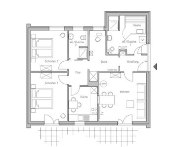 Durchdachter Grundriss, alle Zimmer des Hauses sind barrierearm auf einer Ebene zu erreichen. Ruhige Lage der beiden Schlafzimmer im hinteren Trakt des Hauses. Die Wohnfläche beträgt ca. 92 qm.