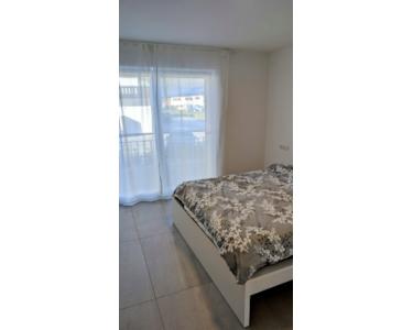 Die Wohnung ist auf der gesamten Fläche großzügig gefliest und ist mit einer Fußbodenheizung (Fernwärme) ausgestattet. Das große Wohnzimmer besitzt eine lange Fensterfront mit bodentiefen Fenstern, die dreifach verglast und mit elektrischen Rollläden versehen sind. Vom Wohnzimmer gelangen Sie auch zum Balkon, der mit ca. 15 m² Grundfläche großzügig geschnitten ist. Die sich anschließende offene Küche besitzt zwei Fenster mit Bergblick. Das barrierearme Bad ist mit einer ebenerdigen Dusche ausgestattet und besitzt darüber hinaus ein Tageslichtfenster. Auch im Schlafzimmer befindet sich ein bodentiefes Fenster. Das dritte Zimmer kann als Kinder- oder Arbeitszimmer genutzt werden.