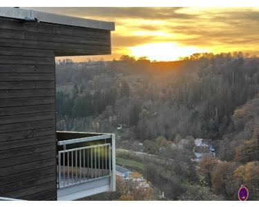 Besonders hervorzuheben sind der große Balkon mit traumhaftem Ausblick und perfekter Ausrichtung für gemütliche Abende: Die Sonne geht auf der Balkonseite unter – ideal für alle, die ihre Feierabende gerne im warmen Licht genießen. Durch die Hanglage und die versetzte Bauweise kann niemand in die Wohnung blicken.
