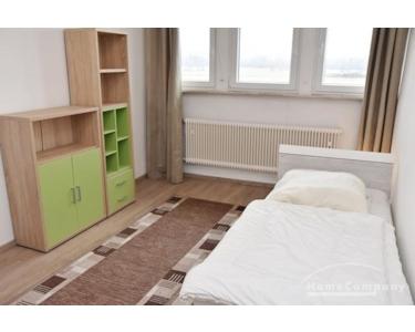 Schlafzimmer mit Bett 180x200 cm, Kleiderschrank.