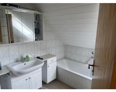 Diese freundliche Wohnung, die sich im DG befindet, kann zum 01.4.2026 bezogen werden. Neben 5,5-einhalb hübschen Zimmern zählen zu der Wohnung ein Badezimmer sowie ein separates Gäste-WC. Eine Besonderheit ist, dass es nicht nur einen Balkon gibt, sondern Sie auch den Garten am Haus zu Ihrer Erholung nutzen können. Eine Einbauküche mit Elektrogeräten wie Herd, Backofen, Geschirrspüler, Kühlschrank sind vorhanden. Desweiteren 1 Stellplatz und 1 Garage für Ihr Auto steht Ihnen zu Verfügung. Ein Kellerraum für die Waschmaschine kann gerne genutzt werden.