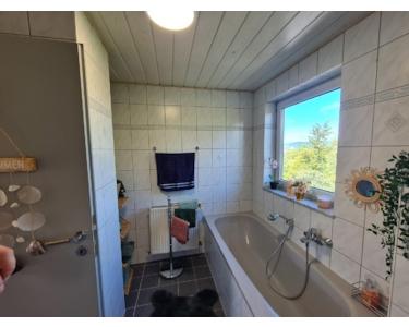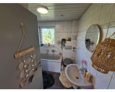 Tageslichtbad mit Badewanne, Waschbecken und WC