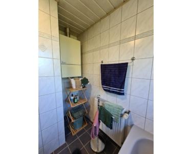 Laminatboden in Wohn- und Schlafzimmer, Fliesen in Küche, Bad und Flur