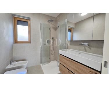 Die Eingangstür ist einbruchsicher und feuerbeständig, während die Außentischlerei Holz-Aluminium-Profile mit Dreifachverglasung umfasst. Ein System von Roll- und Plissee-Moskitonetzen und Aluminiumjalousien mit Elektromotoren runden die Qualität der Wohnung ab. Ideal für Liebhaber von moderner Technik und Komfort.