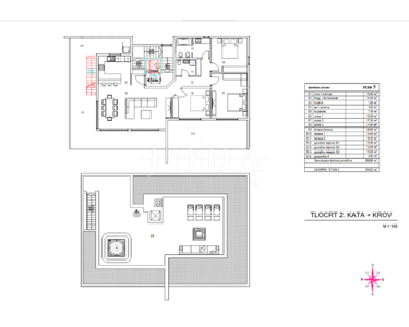 Zum Verkauf steht eine luxuriöse Drei-Zimmer-Wohnung in einem neuen Gebäude, im 2. Stock, ein Penthouse mit einer Dachterrasse mit Grünflächen, orientiert Südost - Südwest. Die Wohnung befindet sich in einem Gebäude mit einem Aufzug, und im Untergeschoss gibt es eine Garage mit zwei Parkplätzen. Das Wohnzimmer ist mit einer nach Süden ausgerichteten Terrasse verbunden.