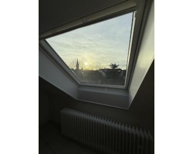 Neue moderne Fenster sorgen für eine helle Atmosphäre und ermöglichen einen schönen Ausblick über die Dächer von Neuss, während die Rückseite des Hauses durch die Gartenlage dennoch ein besonders ruhiges Umfeld bietet.